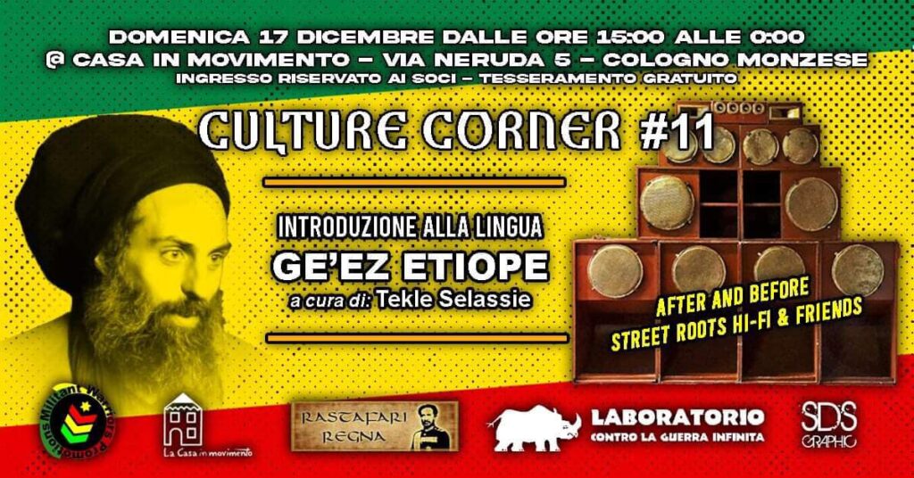 Domenica 17 dicembre: CultureCorner #11 | Introduzione alla lingua Ge’ez etiope